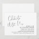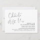 Detta är bröllopsinbjudan, med minimalistisk svart typsnittsdesign (Fira med oss).
