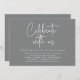 Modern svart skript-tema, bröllopsinbjudningskort (Fira med oss). Det är perfekt för din efterbröllopsfest. Lägg till dina detaljer i matchande mörkgrå font / bokstäver.