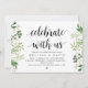 Modern Rustik grönska Eucalyptus inbjudningskort (med kort titel: Fira med oss). Det är perfekt för din bröllopsrepetition middagsfirande, före din bästa dag. Lägg till dina detaljer i matchande svart teckensnitt / bokstäver.