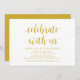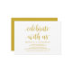 Vacker Fira med oss, Bröllopsflykt Annonserings- / Inbjudningskort, i Modern Rustik design, i guldfärgad tema. Detta är perfekt för din bröllopsfest och efterbröllopsfirande. Lägg till dina detaljer i matchande teckensnitt / bokstäver.