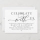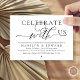 Meddela elegant ditt lyckliga slut med vår moderna bröllopsinbjudan "Fira med oss". Skräddarsydd för par som fortsätter sin kärlekshistoria, hittar denna inbjudan en perfekt balans mellan sofistikering och charm och sätter tonen för en oförytterlig dag. Med en modern samtida typsnittsdesign tillför den en tidlös elegans till er speciella dag. Designad av den talangfulla TeeshaDerrick, är denna inbjudan ett stilrent uttryck för er varaktiga kärlek.