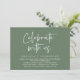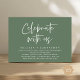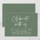 Elegant tillkännage ditt lyckliga tillbud med vår moderna grönt för etisk estetisk bedövning, bröllop elopement firande inbjudningskort, "Celebrate with us". Den här inbjudan är skräddarsydd för att par ska kunna fortsätta med sin historia om kärlek, och den inbjuder strejkan till en perfekt som är sofistikerad och charm och som skapar en plats för en oförglömlig händelse. Med en modern contemporary-skriptutformning ger den speciella dagen en aning tidlös respons. Designad av den begåvade TeeshaDerrick är inbjudan ett snyggt uttryck för ditt uthålliga kärlek.