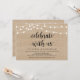 Vacker Fira med oss, Bröllopsutflykt Annonsering / Bröllopsinbjudan, i Moderna Rustika Bondgårds Strängljus, träbrun papper tema. Detta är perfekt för din bröllopsfest och efterbröllopsfirande. Lägg till dina detaljer i matchande teckensnitt / bokstäver.