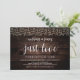 Vacker Inget fint, Bara kärlek, Bröllopsutflykt Annonsering / Bröllopsinbjudan, i Moderna Rustika Lantliga Strängljus, träbrun papper tema. Detta är perfekt för din bröllopsfest och efterbröllopsfirande. Lägg till dina detaljer i matchande typsnitt / bokstäver.