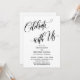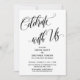 Med hjälp av ett elegant, virvlande modernt skrivstilteckensnitt har jag skapat en grafisk överlagring som lyder "Fira med oss", för att komplettera det sofistikerade versala serif-teckensnittet som används för dina detaljer. Bakgrunden kan ändras till valfri färg du föredrar. Alla lager lades till separat och lämnades olåsta för att ge dig betydande designkontroll; gör de ändringar som behövs för att skapa det kort du föreställer dig. Och tveka inte att höra av dig till mig om du behöver anpassningshjälp eller har speciella önskemål. // 119 //