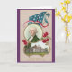Ett porträtt av George Washington omgav vid amerikanska flaggan, körsbär och hans hem av Mount Vernon från en patriotisk vykort circa 1914.
