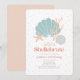 Denna retro och söta "Låt oss skalfesta" flickas födelsedagsinbjudan har snigelskal, korall och sjöstjärna i rosa och turkosblå under havet. Baksidan har en ljus penslad rosa bakgrund med vågmönster. Perfekt för födelsedagsfester under havet! Anpassa den efter dina behov. Du hittar matchande produkter i min butik.