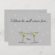 Detta är ett coolt uppmuntrande/motivationskort med texten 'Fira små segrar först...' ovanför två 'dansande' martiniglas som formar ett leende ansikte. En bra påminnelse till oss alla att alltid vara tacksamma för alla små segrar först innan vi kan se de stora sakerna i våra liv...