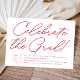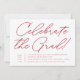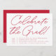 Moderna inbjudningar till studentfesten med "Fira Grad!" visas i ett handskrivet rött skript. Anpassa inbjudningskorten för den röda studentfesten till student namn, studenten och party. Inbjudan återgår till visning av en solid röd bakgrund med utrymme för ytterligare text eller foton. Inbjudningskorten för studentfest av trendiget är perfekt för både högskolan och högskolan i studenter.