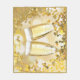Lägg dig med en firande av champagneglas och konetti-filt. Två champagneglas med bubbelchampagne för att fira speciella tillfällen på en mysigt loppfilt.