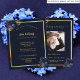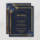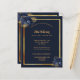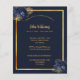 En marin blå bakgrund, en faux guld ram. Dekorerad med blåa blommor. Anpassa och lägg till namn, data och din text. Lägg till ett foto på baksidan.