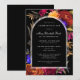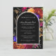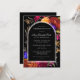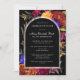 En svart Boho-båge ger ram för din Firande av Life-information. Det genomskinliga kant gör att det hamnar mot svart bakgrund och blommor. Eleganten och den traditionella vittexten är lätta att läsa och anpassa. Blommor runt Boho-bågen. Djup burgundi röd ros, skarp orange dahlias, lila pansier och farliga blommor av magenta skapar en dramatisk vibe. Den avlidnes namn är skriven i ett traditionellt manus. Hela texten kan enkelt redigeras för att skapa en personlig hågkomst.