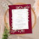 En elegant botanisk personlig firande av livmoderhinnesinbjudan vykort med vattenfärg botaniskt grönt löv på burgundbakgrund. Designad av Thisisnotme©