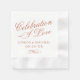 Den formella terracotta-napkin-designen bröllop "Firande i kärlek" i orange har en vacker typografi som kombinerar ett traditionellt blomstrande kalligrafiskt skript med klassisk blockering. Anpassningsbarnas monogramtext kan vara personlig med briden och trimningen namn och bröllop. Innehåller en dekorativ rulla. Var snäll och se till att vår klassiska Elegant Terracotta Orange Bröllop Collection samordnar designen.
