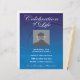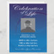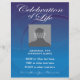 Anpassningsbar Photo Memorial Firande of Life-flygare på vacker blå bakgrund med svävande cirklar. Helt anpassade med datum, tid, ställe etc. Byt ut anpassningsbarna foto här mot ett eget foto av personen som ska hedras. Ett firande av livets evenemang är ett underbart sätt att minnas och betala heder åt en familjemedlem eller vän, antingen som tillägg till eller i stället för en traditionell begravningstjänst.