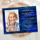 Modern blå marble Memorial-begravning/Firande av livets inbjudan. Dessa sympatiska begravningsinbjudningar har ett foto på en modern lapis blå marmordesign. Anpassa den här firande i livets begravningsinbjudan med dina kära foton, namn & data, händelseinformation. Firande i livets inbjudan är perfekt för minnesceremonier och begravningsinbjudningar. COPYRIGHT © 2021 Judy Burrows, Black Hund Art - Med alla Höger reserverade. Firande av blått marmorkort för livets blåa minnesmärke - vykort