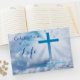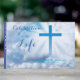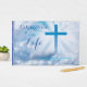 Ljusvita moln och ett ljusblått kor skapar ett meningsfullt gästregister för "Firande of Life" för en kristälskad. Lägg till den älskades namn och data till foten av kor och på bok ryggraden. På baksidan finns utrymme för antingen ett foto (och namn) eller en enkel blå bak som koordinerar med färg i kor. Den markerade typsnitt-kontrasten är bra. "Firande of Life" är för närvarande inskrivet, men ordalydelsen kan lätt ändras.