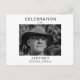 Firande av livets vykort. Information på baksidan. Förlorad älskad med firande. Foto. Livets år. Filtret Svart och vitt appliceras på fotot.