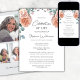 Firande i livets inbjudningar | 4 fotokollage Persikodesign ro. Med det här redot för inbjudan till minnestjänster för elegant att anpassa dig bör du hedra ditt älskade liv. Om du vill ändra teckensnittets färg eller stil klickar du på anpassa ytterligare i slutet av mallen.