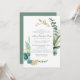 Elegant tealblått botaniskt löv skapar ett modernt vattenfärgat ram. Guld lämnar och grenar ge bröllopsinbjudan och elegant luxe vibe. Med öppna hörn kan du enkelt redigera texten för att skapa en personlig hågkomst.