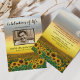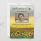 En vanlig minnesinbjudan med en vacker solnedgång över en solros fält, ett foto av din borttappad nära en och en firande av livsstil som lätt kan vara personlig.