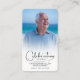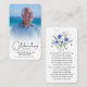 Ett enkelt minneskort innehåller "Firande av livet av" med ditt älskade foto, namn & data, och en dikt och en blåa blommor på baksidan (kan ändras till ditt eget ord). Snygg för en uppskattad keepé, begravningstjänster och firande för livets minnesmärke. MATCHING-objekt i vår samling.
