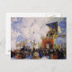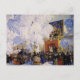 Vintagefirande med karusell, clowner och scen. Människor som trängs runt scenen. Snöigt samhälle av den ryske konstnären Boris Kustodiev. Målningen heter också "Sagan".