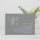 Modern svart script-tema, bröllopsinbjudningskort för vigsel utan familj och vänner (fira med oss). Det är perfekt för din efterbröllopsfest. Lägg till dina detaljer i matchande mörkgrå font / bokstäver.