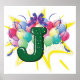 lys upp vilket rum som helst med denna festliga bokstav j-monogramaffisch med en livfull grön initial omgiven av en glatt kluster av färgglada ballonger och konfetti. detta högkvalitativa tryck är perfekt för att dekorera ett barns sovrum, barnkammare eller lägga till en festlig touch till en födelsedagsfestbakgrund. den höga energidesignen och lekfulla banden gör den till en iögonfallande väggkonst för alla som vill förnya sin miljö med ett roligt och fantasifullt alfabettema.