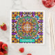 Förvandla en händelse till en fiesta med den här karnevala färg-mosaiken och matchande glastextområde för jade-grönt. Den centrala delen av mönster har en svag illusion, som om den tittar ned genom glaset i nedre lagrar. Utseendet på konstruktionens kompass mitten gör detta underbart för nautiska teman, medan turkos, grönt lila och vit palette echo mardi gras och andra karnivaler och kulturellt firande.
