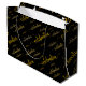 Svart presentsäck med skuggor av guld i olika storlekar med texten firande i ett skript-teckensnitt med tecken. Den här presentväskan och presentdesignen går till de flesta tillfälle som Helgdagar, årsdag, födelsedag, Bröllop, babyduschar och så vidare. Denna moderna och minimalistiska utformning i guld på svart gör den till elegant och exklusiv. Ordna detta och använda för olika händelser.