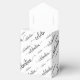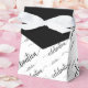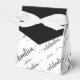 Vit favoritruta med svart Firande i ett dekorativt skriptteckensnitt med tecken i olika storlekar. Det främre "locket" är i fast svart så att den vita buggen visar sig. Den här förmånliga utformningen är mångsidig och gäller för de flesta tillfälle och teman: födelsedag, Bröllop, årsdag, Helgdag och mycket annat. Den klassiska designen i monokroma färg gör den till elegant och modern.