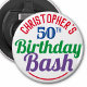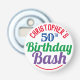 Att fira en speciell födelsedag. Designad för någon som är 50 år gammal. 50-årsfirandet. Födelsedagsbäcken. Lägg till namn och nummer. Födelsedagsfestens souvenir-knapp flaska-öppnare.