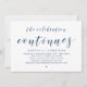 Modern marinblå script-tema, bröllopsinbjudan för vigsel i det små (Firandet fortsätter). Den är perfekt för din efterfest / efterbröllopsfest. Lägg till dina detaljer i matchande svart teckensnitt / bokstäver.