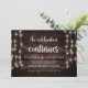 Firandet fortsätter, Bröllopsflykt Tillkännagivande / Inbjudningskort, i Rustik gård Trä, Strängljus design. Detta är perfekt för din bröllopsmottagning och efterbröllopsfirande. Lägg till dina detaljer i matchande teckensnitt / bokstäver.