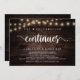 Firandet fortsätter, Bröllopsflykt Annonsering / Inbjudningskort, i Rustik gård Trä, Strängljus design. Detta är perfekt för din bröllopsmottagning och efterbröllopsfirande. Lägg till dina detaljer i matchande teckensnitt / bokstäver.