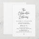 Vacker Modern Vacker Casual Minimalistisk, Svart Script-teckensnitt, Bröllopsflykt-meddelande, Inbjudningskort (Firandet fortsätter). Detta är perfekt för din bröllopsfest och efterbröllopsfirande. Lägg till dina detaljer i matchande teckensnitt / bokstäver.