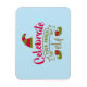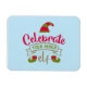 Vitsidig juldesign för långa skor och hylsa med texten "Fira ditt inre elf" på ljusblå snöbakgrund