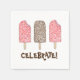 Innehåller en originalmarkörillustration av en chokladkakaopsikel och jordgubbsbalk, med CELEBRATE i ett typsnitt av roligten. Matchande tallrikar är tillgängligt.
