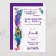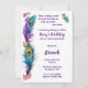 Brunch-inbjudan på födelsedagen! En födelsedagskalender.. Att fira kvinnors vänskap! En elegant påfågelfjäder och blommigt fick brunchinbjudan för att fira dina kvinnliga vänner med en brunch-födelsedagskalas. Detta painterliska överlämnande av fjädrar och blommor är en vacker inbjudan till vänskapens sisterskap. Anpassa med din information.