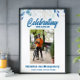 Firar livet Foto Begravningsaffisch är skapad av szdesign. Designen består av blå blommotiv och stor blå typografi som ger en bra kontrast.