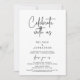 Snygg, modern vacker Avslappnad minimal, svart skript, Bröllop Elopement-meddelande, inbjudningskort (fira med oss). Det här är perfekt för ditt bröllopsmottagande och party efter bröllop firande. Lägg till information i matchande teckensnitt/text. Designad av TeeshaDerrick