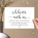 Markera början på din evighet med elegans med vår contemporary, vackra, vita, svarta, inbjudningskortet bröllop elopement firande, "Fira med oss". Perfekt för par att utvidga sitt glada tillfälle, denna inbjudan är sofistikerad med en antydan om spelaktsamhet, som anger en minnesvärd händelse. Med ett modernt tema för skriptdesign utan tidslängd lägger det till en lite förfinad charm till dina festligheter. Den här inbjudan är skapad av TeeshaDerrick och lovar att på ett klokt sätt fånga din kärlek-historia.