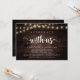 Fira med oss, Bröllopsannonsering / Bröllopskort, i rustik trädgårdsstil med trä och slingrande lampor. Perfekt för er bröllopsfest och efterfest. Lägg till era detaljer i matchande typsnitt / bokstäver.