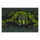 En solobildad säng (Bombina orientalis) vilar i ett litet bassäng i vatten. Den ljusa grönten står i kontrast till mörkens svarta fläckar över hela kroppen, medan det stilla vatten ger en perfekt reflektion