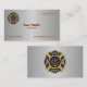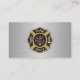 Brand-avdelningens logotyp på metall struktur tryckt bakgrund för borstad utskrift. Underbart affärskort för brandmän och första responders.