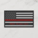 Tunn Red Line American Flagga Firefighter Affärskorts - USA American flagga design i Firefighter Flagga, på en ytläderdesign. Perfekt för alla brandmän, brandkår och brandkårer. Anpassa det här tunna affärskortet till namn, avdelning, adress och kontaktinformation. Tillbaka - "Firet in last out". COPYRIGHT © 2020 Judy Burrows, Black Hund Art - Med alla Höger reserverade. Affärskortet Fire Department Faux Leather Fireman Firefighter