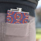Röda generiska brandmän/brandkårar bricka logotyp grafik mönster på blå bakgrund. Perfekt för brandmän och brandmän som kärlek