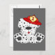Den svarta och vita fläckade dalmatiska hund med röd eldhatt och röd eld lastbil.