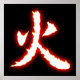 Fire Kanji Poster. Det här är den japanska Kanji-symbolen för brand. Symbolen har ställts in så att den ser ut som en flimrande ljuslåga.